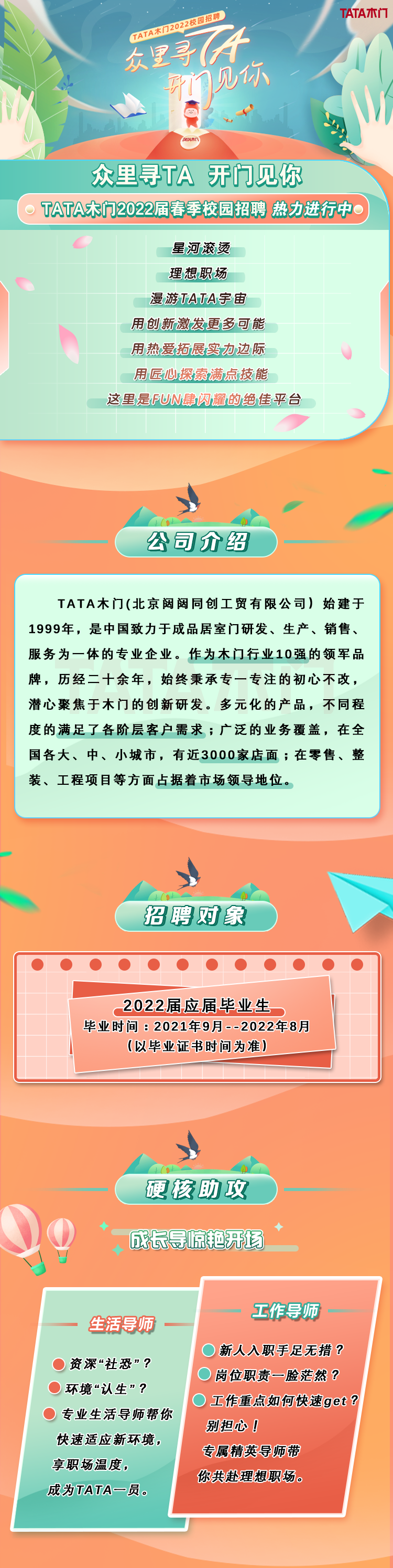 TATA木门2022届春季校园招聘简章——面向工商管理、财务管理专业