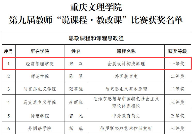 近日,在刚刚公布的重庆文理学院第九届教师“说课程·教改课”比赛获奖名单中,mansion88明升教师表现优异,斩获一等奖1项、三等奖2项,充分展示了学院在深化教学改革、提升课堂教学质量方面取得的显著成效。